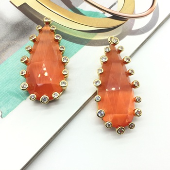 Nuevo diseño JOYERÍA 18K chapado en oro moda piedra preciosa piedra flor forma pendiente para mujer